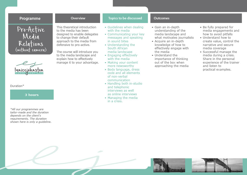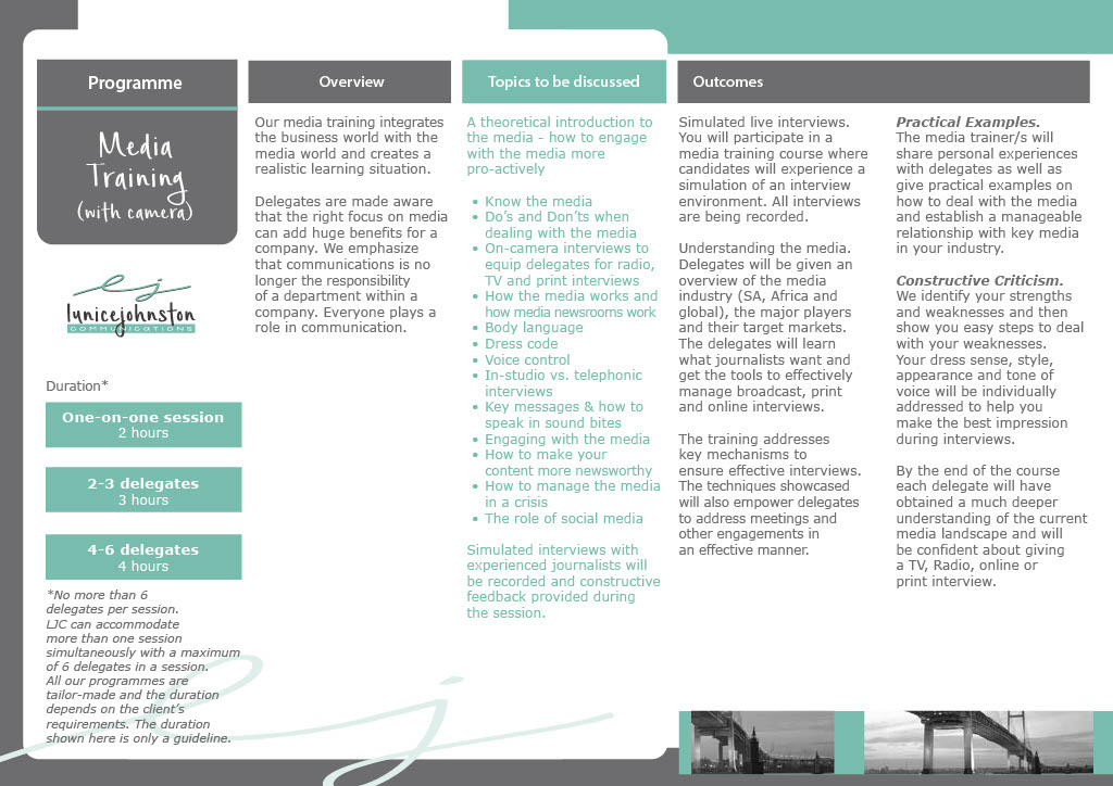 Lunice Johnston Communications provides media skills development in media and public relations (PR).